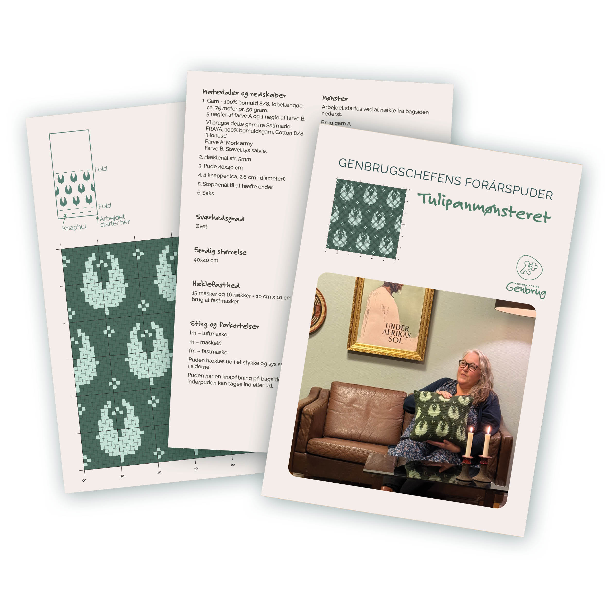 Sammen med kommunikationsteamet blev der designet et hæklemønster inspireret af forårets tulipaner, og Anne-Line hæklede fluks et eksemplar af den hyggelige (og helt unikke) sofapude, som du kan se på billedet ovenfor.